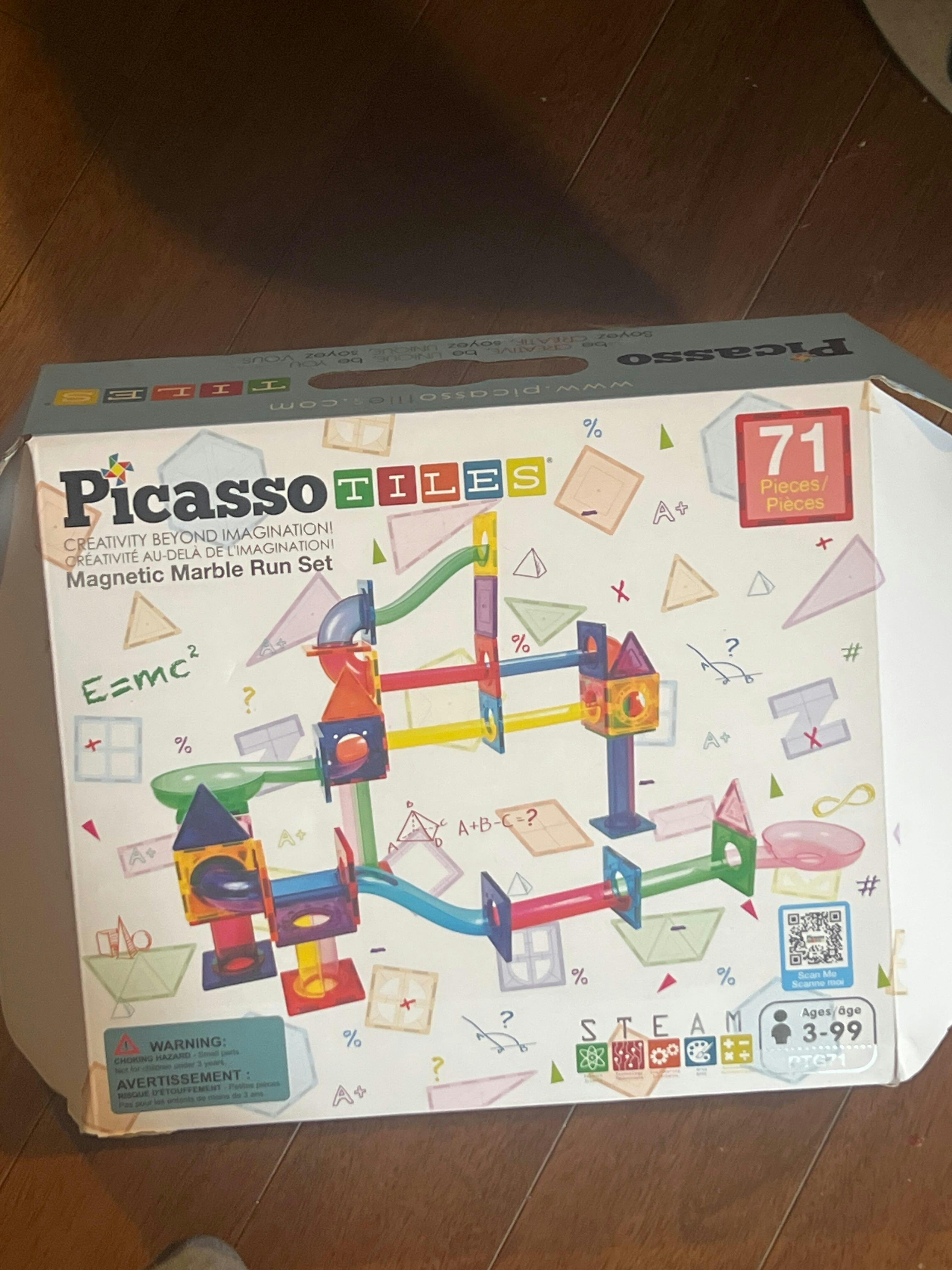 PicassoTiles Marble Run Race Track Set (PTG108) includes 108 magnetic tiles to encourage kids to design marble runs and race tracks. This 3-in-1 interactive toy transforms learning into creative fun with strong magnets, dynamic pieces, and infinite design possibilities using magnet tiles.