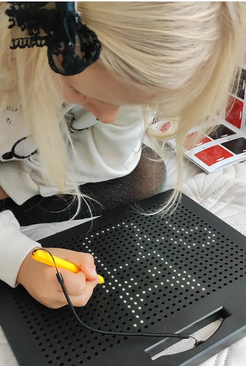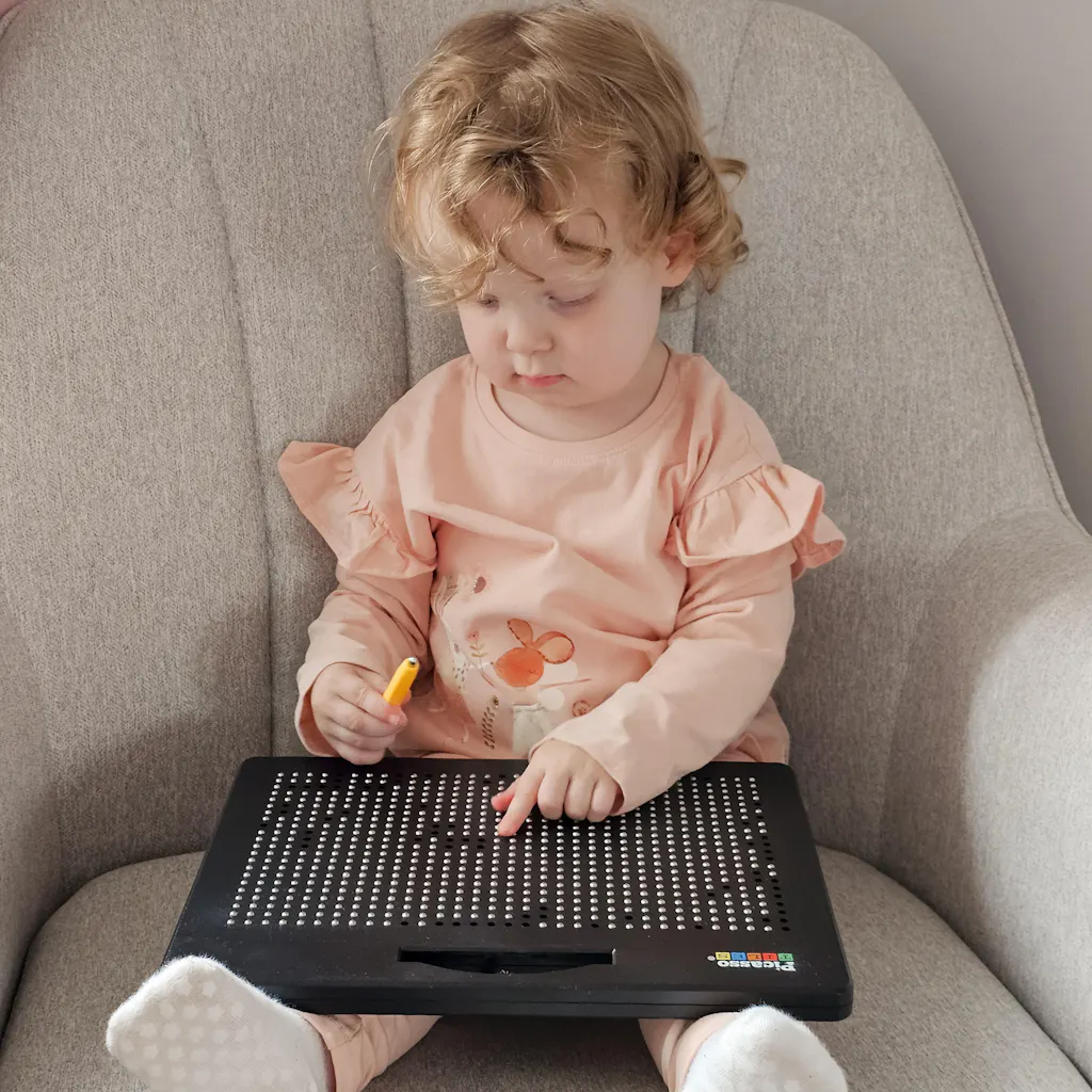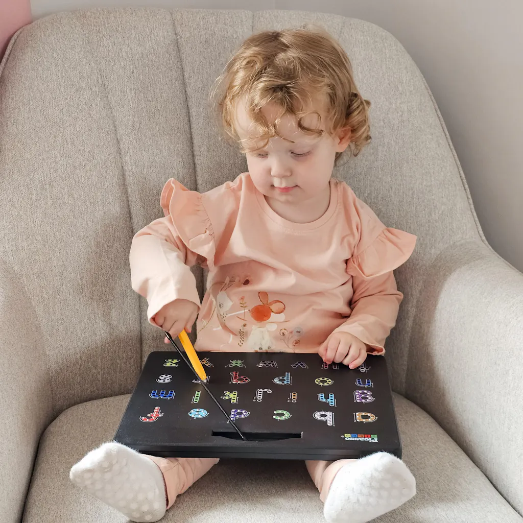 Kids can practice letters, doodle freely, or use the magnetic pen and stamp tools