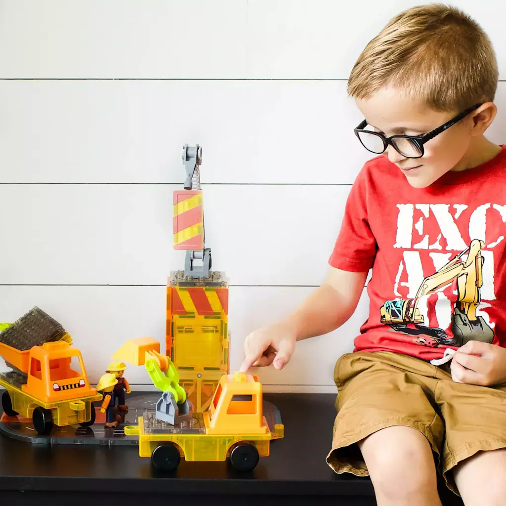 32 construction-themed magnetic tiles
