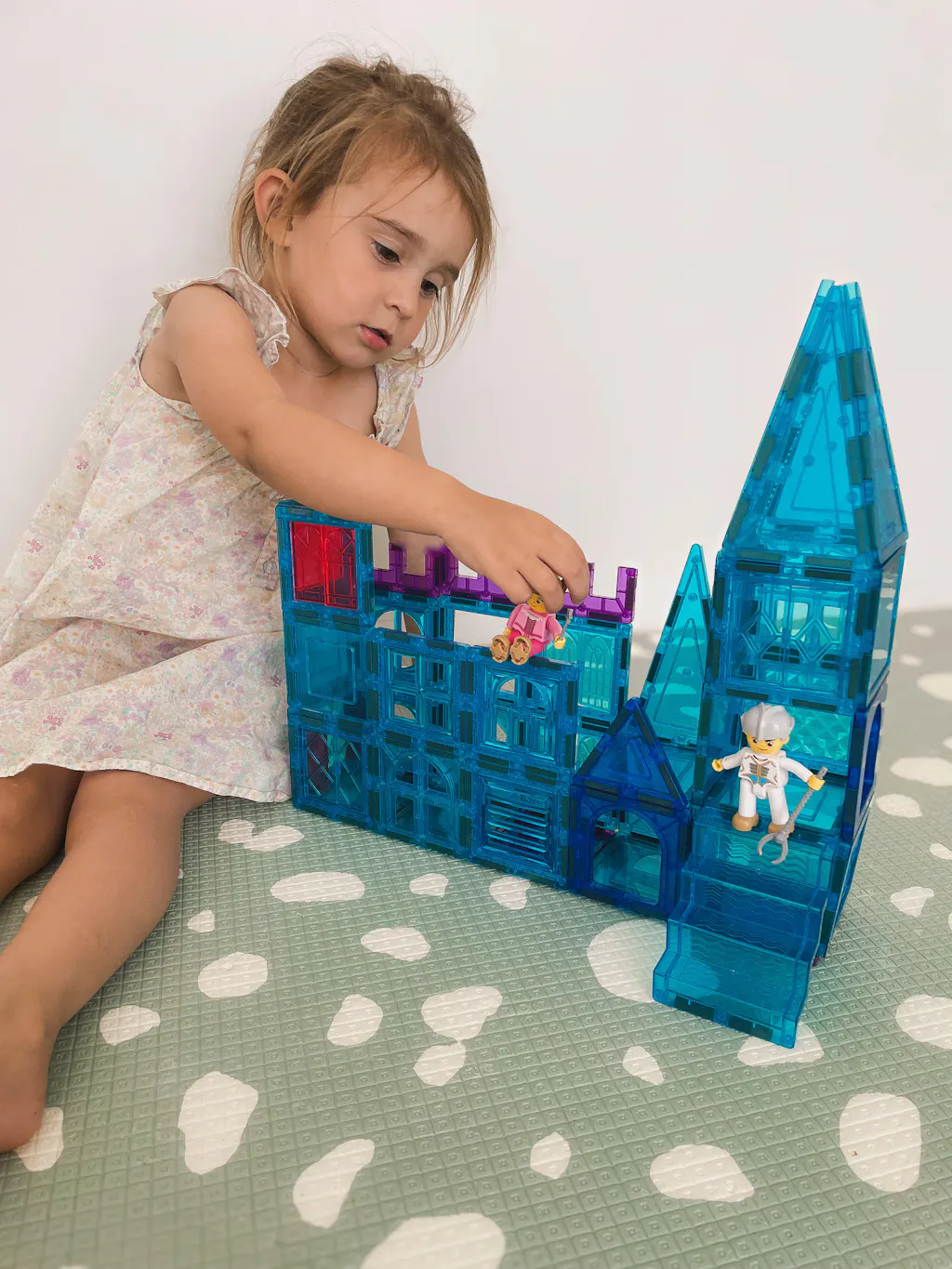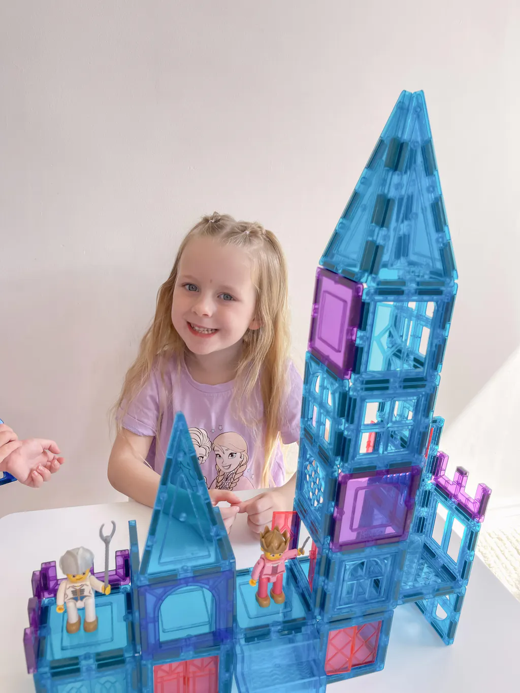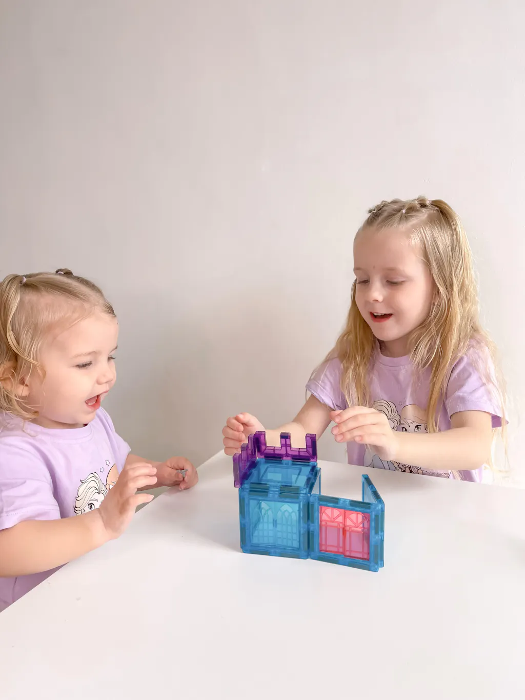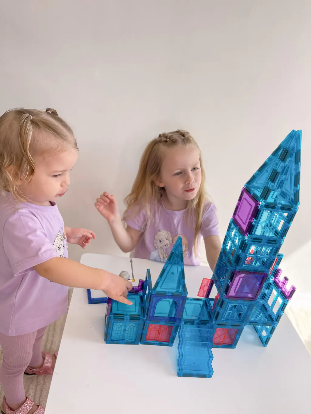 Translucent magnet tiles bring every icy castle to life with brilliant color and light